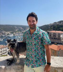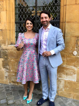 Christina and Vladimir married in August 2024 in the Cellebroederskapel in Maastricht and the dog Mycroft was the ring bearer. From Christina’s Instagram “seamstresssoprano”: “I loved my non-traditional wedding dress and felt like a million dollars wearing it.” Christina's hobby is making beautiful clothes, choosing patterns, and selecting the finest fabrics. She also made this shirt for her husband.
