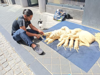 A Rumanian sand sculpture artist in Maastricht.